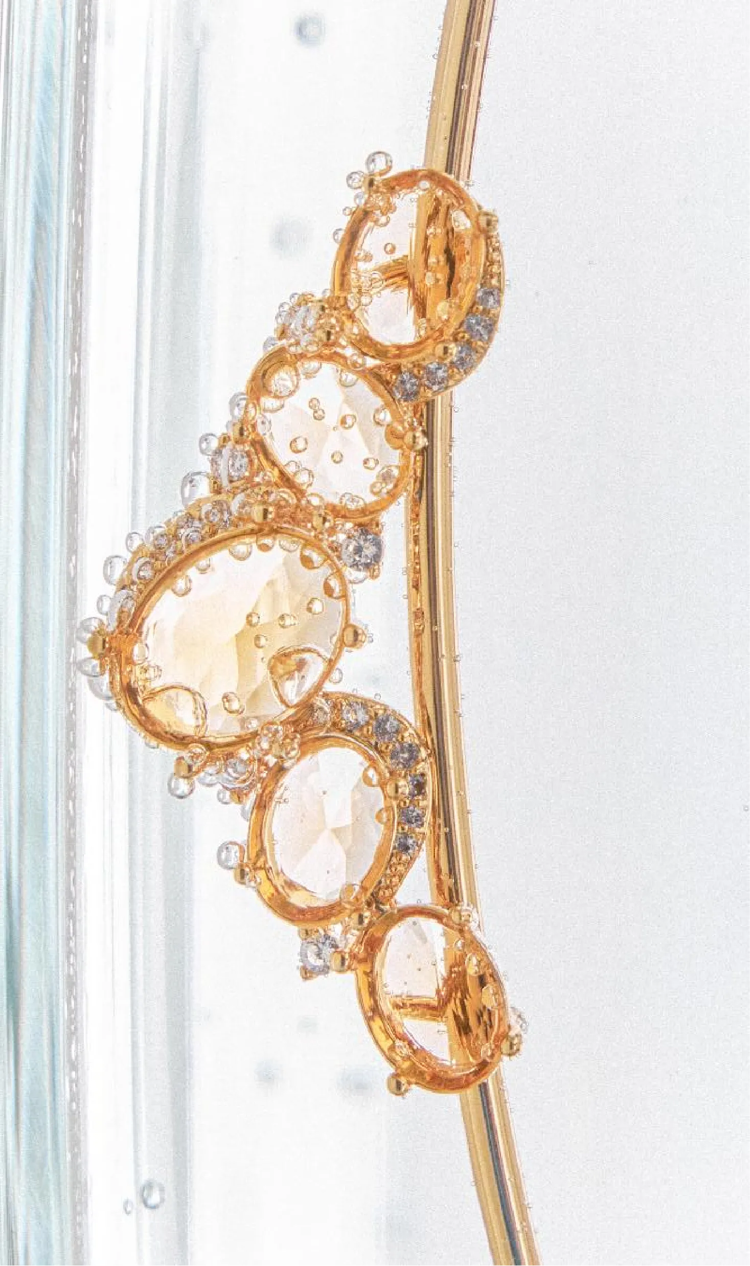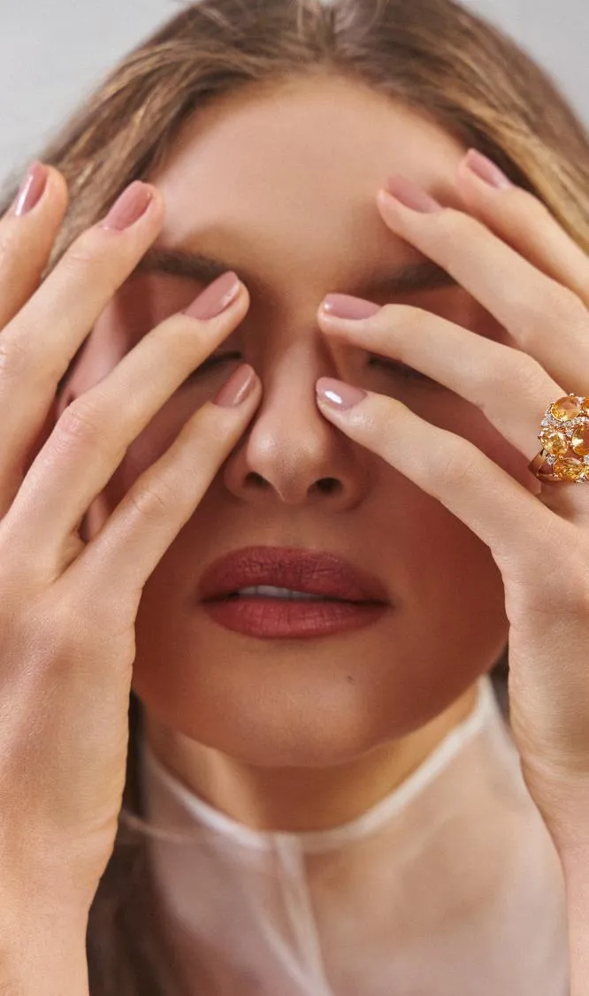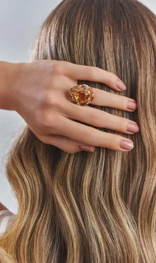 Na Coleção Alma, os cristais em tom âmbar revelam profundidade e emoção. Sua tonalidade quente traz uma sensação de acolhimento, como algo que guarda histórias e sentimentos preciosos.