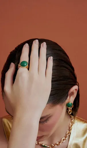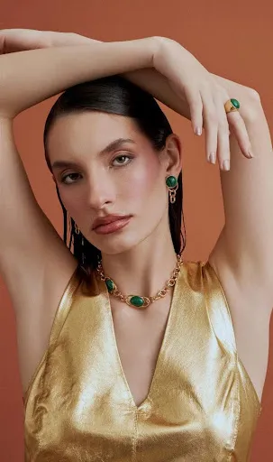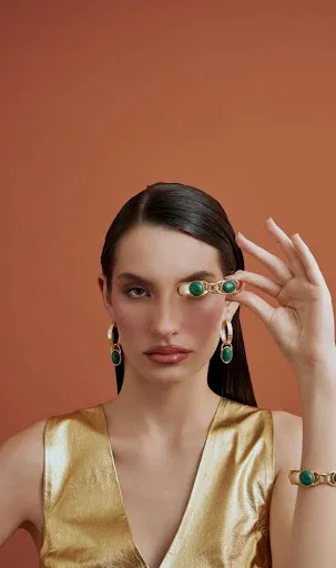 A nova coleção da Zarpellon nasce desse conceito e ganha força ao unir o dourado intenso à malaquita, revelando o verdadeiro significado de maximalismo: mais brilho, mais impacto, mais personalidade.