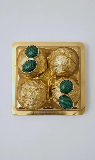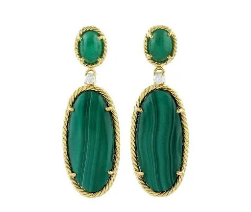 A malaquita assume protagonismo absoluto na coleção. Suas nuances naturais e marcantes reforçam a proposta do maximalismo, onde cada detalhe é pensado para impactar sem perder a harmonia.