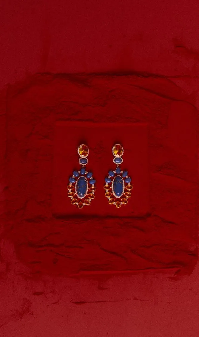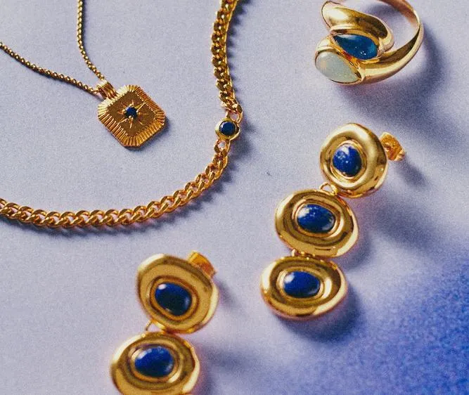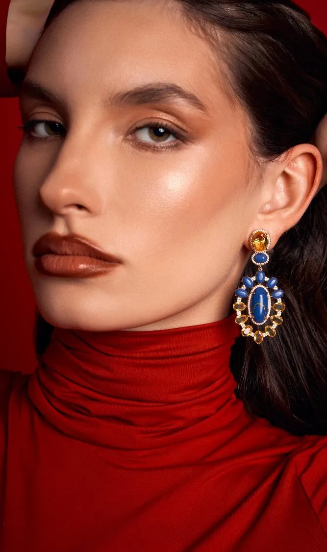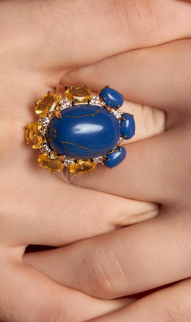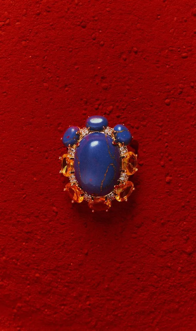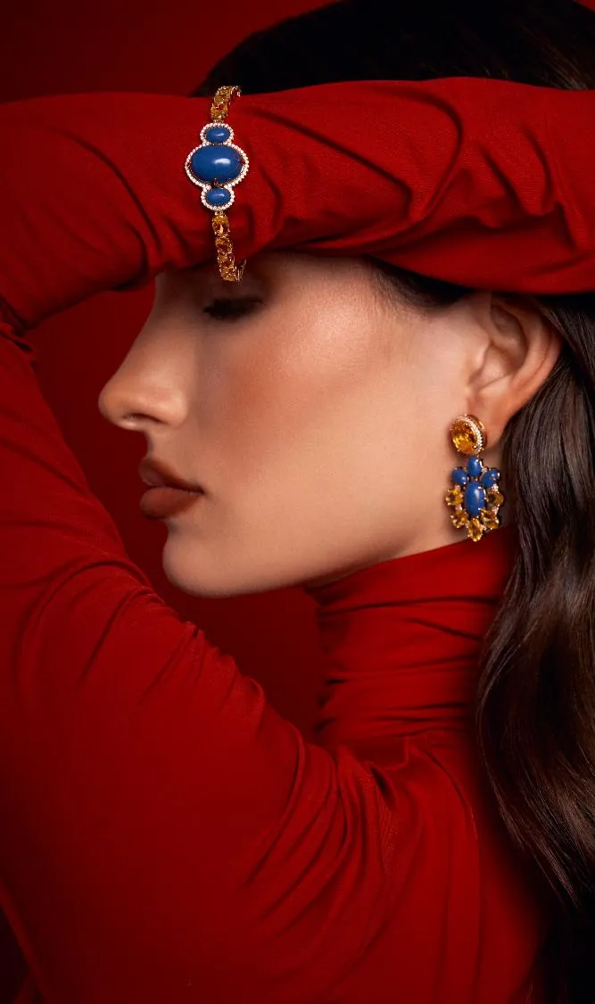 Na Coleção Intensa, o azul profundo inspirado na sodalita, encontra o brilho quente dos cristais amarelos, criando uma composição vibrante e magnética. As cores não apenas se complementam, elas se potencializam. O resultado são peças que chamam atenção pela força visual e pela sofisticação dos contrastes.