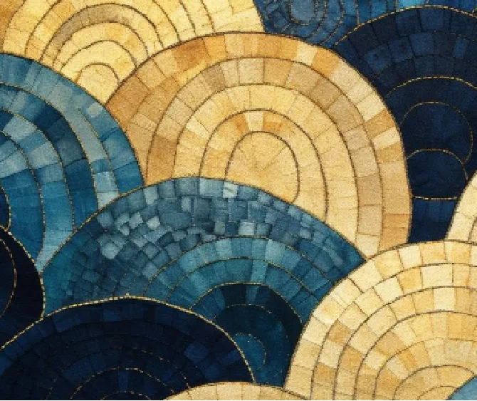 Uma mulher que encontra no brilho dos cristais amarelos e na profundidade do azul uma extensão da sua própria essência.