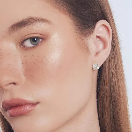 0241284 - BRINCO PEDRA REDONDA MOISSANITE 6.5MM PRATA RODINADA