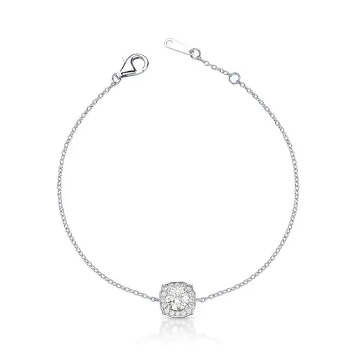 0510893 - PULSEIRA COM PEDRA REDONDA MOISSANITE 5MM PRATA RODINADA