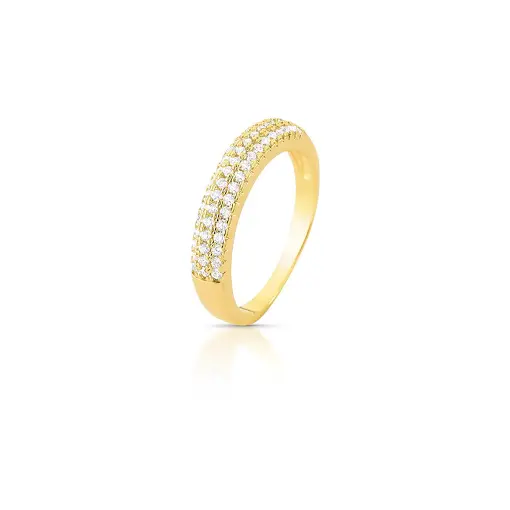 0105562 - ANEL TRÊS FILEIRAS COM ZIRCÔNIAS BRANCAS BANHADO A OURO