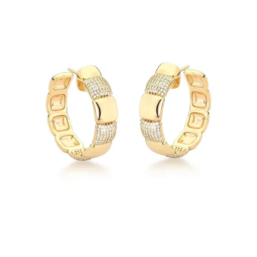 0236209 - MEIA ARGOLA COM QUADRADINHOS LISO E ZIRCÔNIAS BANHADA A OURO