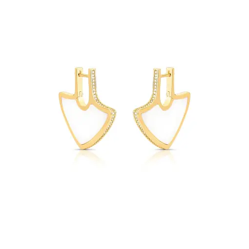 0241358 - ARGOLA TRIANGULAR EM MADREPÉROLA COM ZIRCÔNIAS