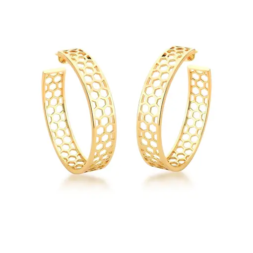 0239045 - ARGOLA GEOMÉTRICA REDONDA E VAZADA BANHADA A OURO