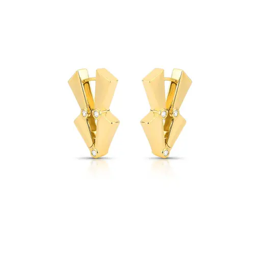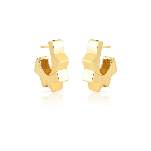 0240583 - ARGOLA GEOMÉTRICA LISA E VAZADA BANHADA A OURO