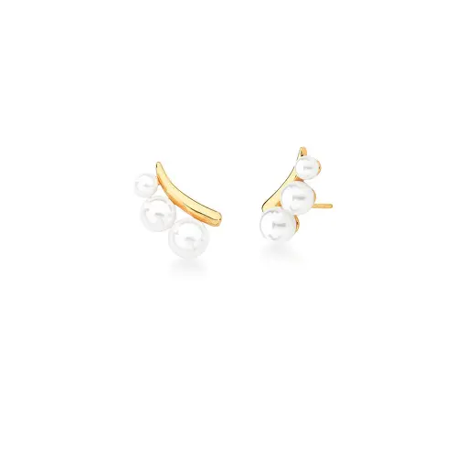 0236404 - BRINCO EAR CUFF LISO E PÉROLAS SHELL BANHADO A OURO
