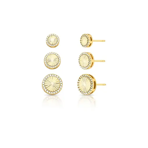 0243655 - TRIO DE BRINCOS REDONDOS TEXTURIZADOS COM ZIRCÔNIAS