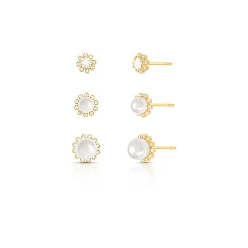 0232050 - KIT TRÊS PARES DE BRINCOS PONTO DE LUZ BRANCOS BANHADO A OURO