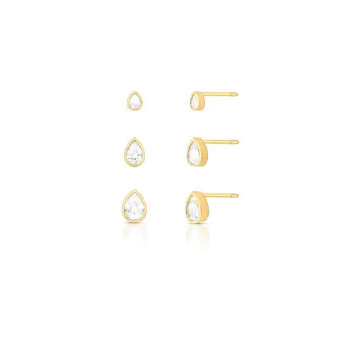 0243401 - TRIO DE BRINCOS EM GOTA COM CRISTAL