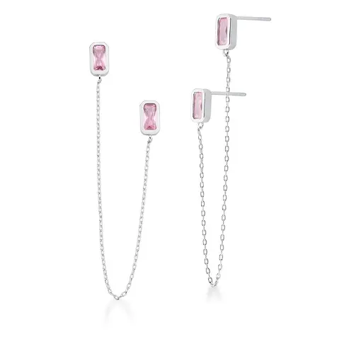 0232323 - BRINCO PRIMEIRO E SEGUNDO FURO RETANGULAR ROSA BANHADO A RÓDIO