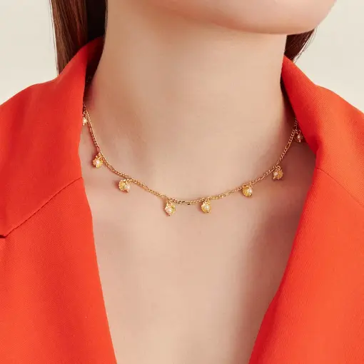 Colar com pedras – As pedras são unanimidade quando o assunto é joias ou semijoias. Elas podem ser zircônias, pérolas, madrepérolas, cristais, o que importa mesmo é a elegância e o toque especial que elas trazem a qualquer look.