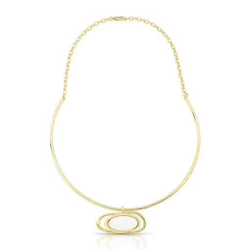 3022100 - GARGANTILHA COM CRISTAL OVAL E ESMALTADO BANHADO A OURO