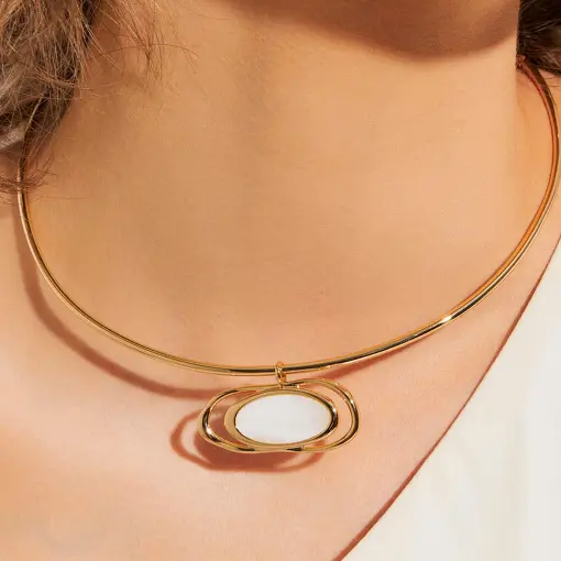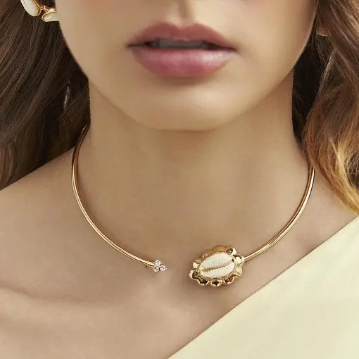 3021532 - GARGANTILHA ARO CRAVEJADO E PÉROLA SHELL BANHADA A OURO