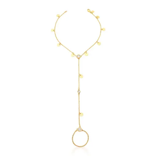 0700417 - TORNOZELEIRA DE PÉ E PONTOS DE LUZ MEDALHAS LISAS BANHADA A OURO