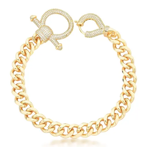 0700545 - TORNOZELEIRA EM ELOS GROUMET E FECHO CRAVEJADO BANHADA A OURO