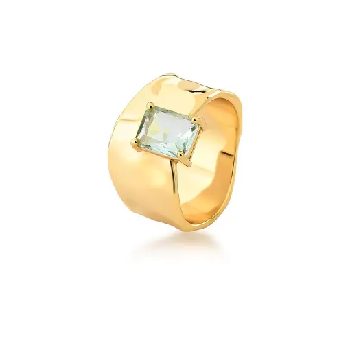 0117053 - ANEL CURVO LISO COM CRISTAL RETAGULAR BANHADO A OURO
