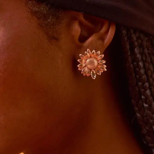 A coleção Solei celebra o poder simbólico dos girassóis, plantas que sempre seguem a luz, e se inspiram em sua vitalidade para criar peças com cristais que brilham como sementes tecnológicas, capturando o espírito inovador e resiliente do futuro, transformando luz solar em força e elegância.