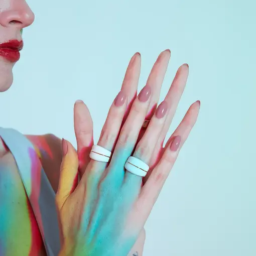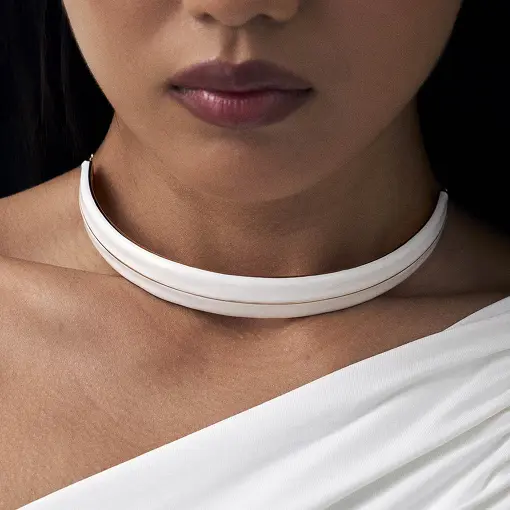 A coleção Quant combina o espírito livre e a energia dinâmica de Mary e dessa fashion week, em peças ousadas no esmaltado branco, inspiradas na moda, arte e arquitetura da capital britânica.