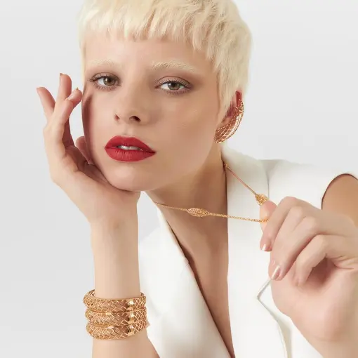 Esta coleção escultural é verdadeiramente única, definida por sua singularidade e inovação. Perfeita para o público que aprecia arte e minimalismo, que agora estão redefinindo a silhueta das joias. A coleção Asawa é uma homenagem à artista norte-americana Ruth Asawa (1926-2013), pioneira na criação de esculturas com fios de arame, cuja técnica é refletida em cada escultura meticulosamente trabalhada. Os detalhes das peças banhadas a ouro são impressionantes e trazem um clima luxuoso. A obra de Asawa é uma referência para muitos artistas em todo o mundo, incluindo as esculturas do McConnel Studios nos EUA, forte inspiração para esta coleção. Encante-se por estas peças atemporais e perfeitas para todas as ocasiões.