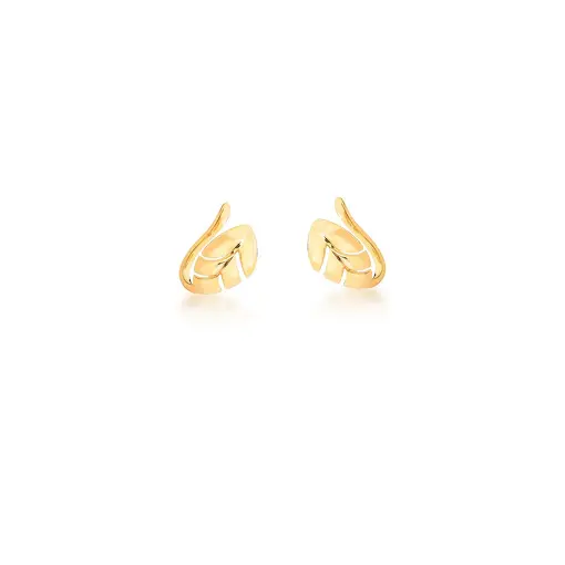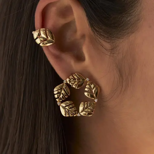 0235428 - BRINCO EAR CUFF 2 EM 1 COM FOLHAS LISAS BANHADA A OURO