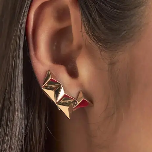 0235234 - BRINCO COM TRIÂNGULOS LISOS BANHADO A OURO