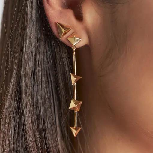 0234854 - BRINCO PÊNDULO COM TRIÂNGULOS E QUADRADOS LISOS BANHADO A OURO