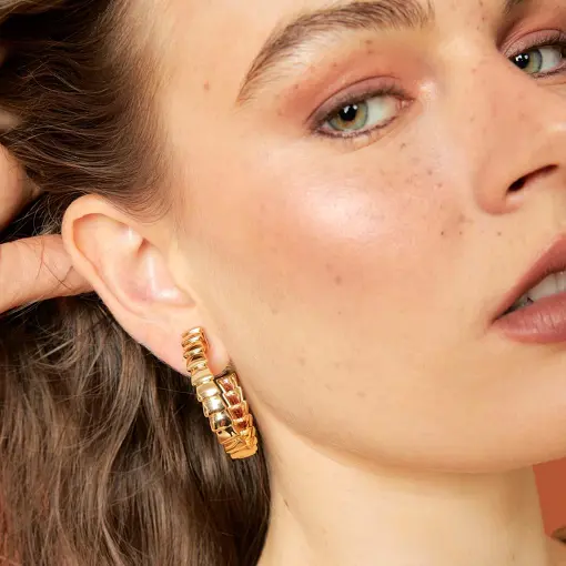 0234707 - MEIA ARGOLA LISA TRABALHADA BANHADA A OURO