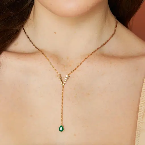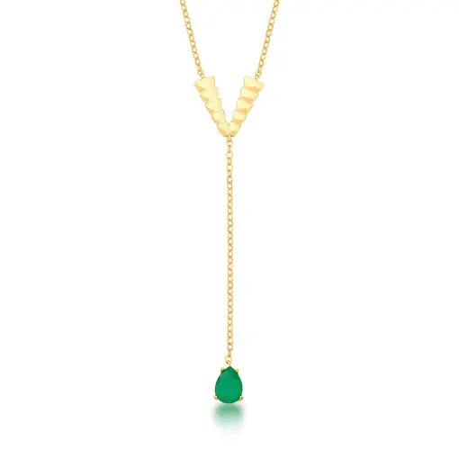 3019508 - COLAR GRAVATA TRABALHADO E PÊNDULO ESMERALDA BANHADO A OURO