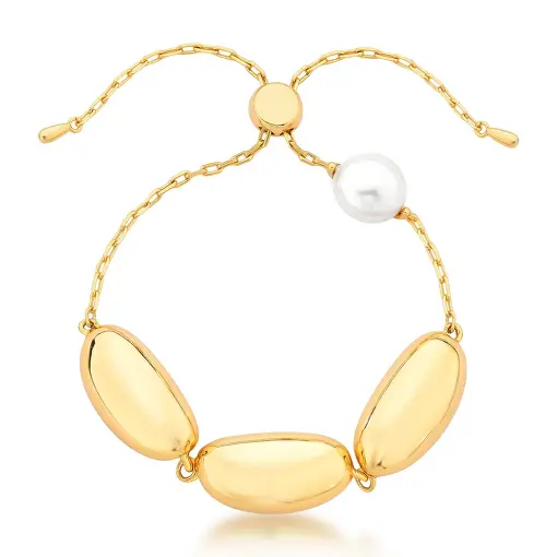 0510019 - PULSEIRA COM PINGENTES OVAIS E PÉROLA SHELL BANHADO A OURO