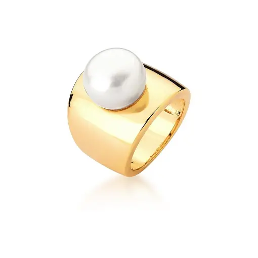 0113422 - ANEL LISO COM PÉROLA SHELL BANHADO A OURO