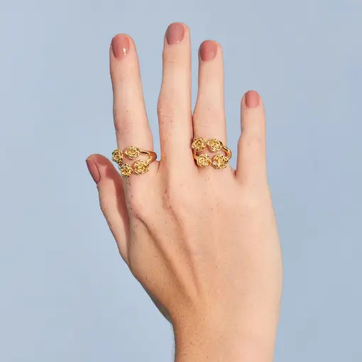 Cada joia representa a evolução desse amor: rosas lisas, agrupadas como em um jardim em plena floração, revelam a beleza dos laços que se fortalecem com o tempo. São formas suaves e orgânicas que falam de afetos que crescem, se entrelaçam e se tornam eternos.