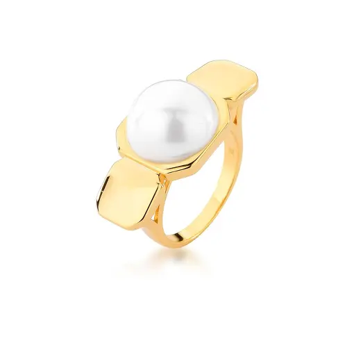0117321 - ANEL COM QUADRADOS LISOS E PÉROLAS SHELL