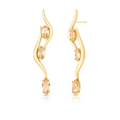 0241344 - BRINCO PÊNDULO CURVO COM CRISTAIS NAVETE