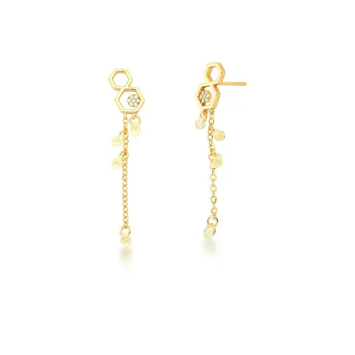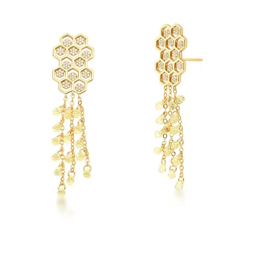 0235795 - BRINCO DE COLMEIA VAZADO COM PENDULO DE CRISTAIS