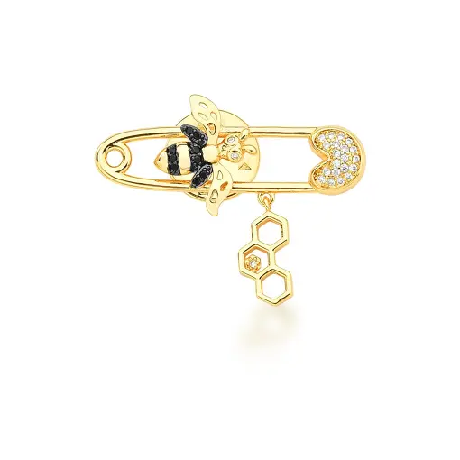 0307299 - BROCHE DE ALFINETE VAZADO COM ABELHA E DETALHE DE COLMEIA