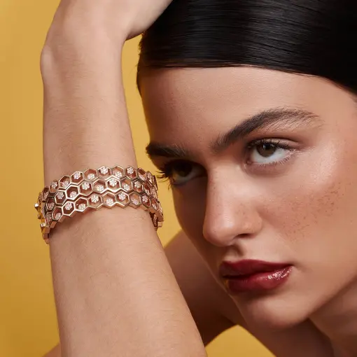 Na joalheria, os animais sempre foram mais do que estética: são herança cultural, símbolos que atravessam o tempo para contar histórias de força, proteção e significado. E poucos símbolos são tão poderosos quanto a abelha. Ela representa coragem em movimento, inteligência coletiva e disciplina delicada. E o favo que ela constrói, perfeito, geométrico, preciso, é a prova de que constância vira beleza.