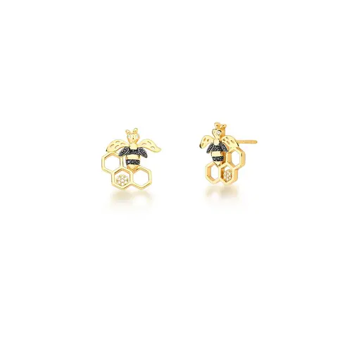 0235793 - BRINCO DE ABELHA E COLMEIA COM DETALHE DE ZIRCÔNIAS