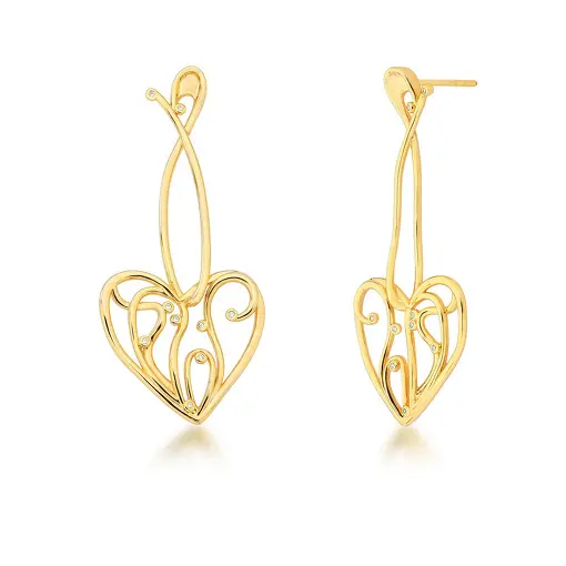 0117182 - ANEL DE CORAÇÃO VAZADO E ZIRCÔNIAS BANHADO A OURO