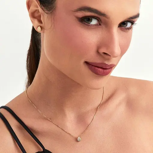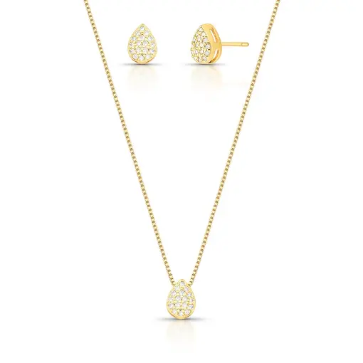 0902975 - CONJUNTO BRINCO E COLAR COM PINGENTE DE GOTA CRAVEJADO