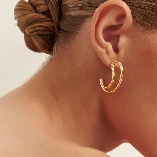 0238227 - ARGOLA CURVA CRAVEJADA DE ZIRCÔNIAS BANHADA A OURO