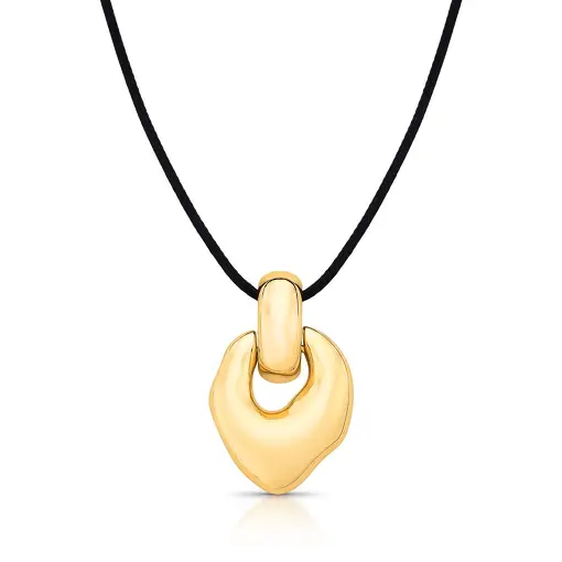 3022521 - COLAR REGULÁVEL EM COURINO COM PINGENTE CURVO E VAZADO