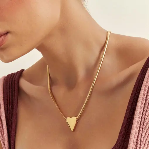 3022755 - COLAR COM PINGENTE DE CORAÇÃO LISO EM ESTEIRA LAMINADA