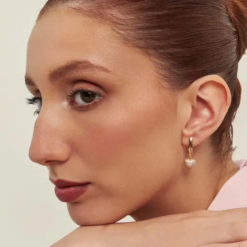 0240917 - ARGOLA COM CRISTAL DE CORAÇÃO EM PÊNDULO BANHADA A OURO
