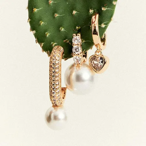 0243582 - BRINCO DE CORAÇÃO CURVO COM CRISTAIS E ZIRCÔNIAS