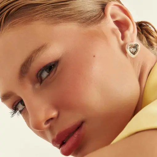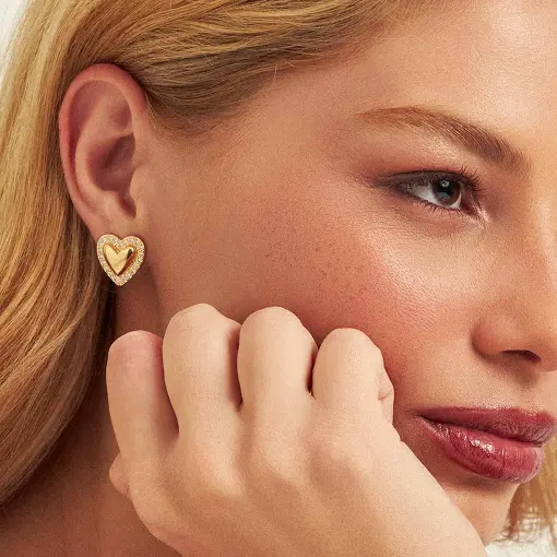 0243180 - BRINCO DE CORAÇÃO ABAULADO CRAVEJADO DE ZIRCÔNIAS