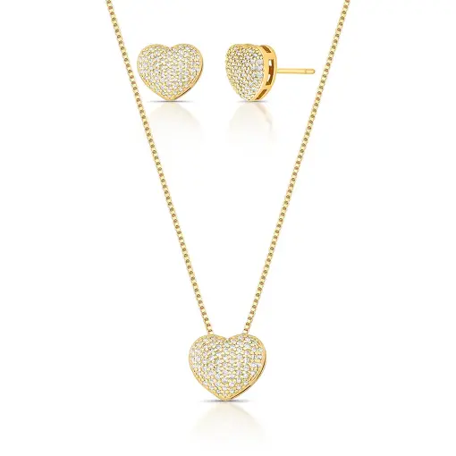 0902618 - CONJUNTO DE BRINCO E COLAR COM PINGENTE DE CORAÇÃO COM ZIRCÔNIAS
