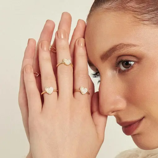 0118815 - ANEL DE CORAÇÃO TEXTURIZADO COM ZIRCÔNIAS